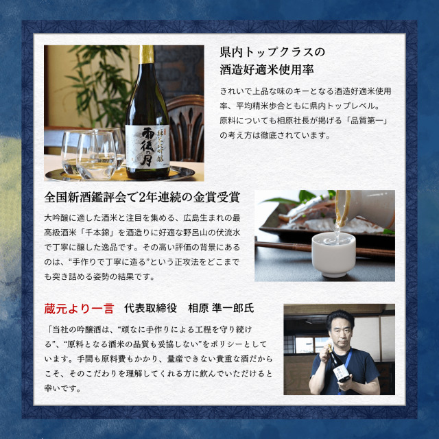 相原酒造 呉市 広島 日本酒 口当たりはフルーティーなワイン お酒の吟醸感も残しながら優しい感じに仕上がり 酸味も程よく女性的な酒 蔵を代表する1本 酒米・雄町の最高峰 丁寧に醸している☆商品属性☆