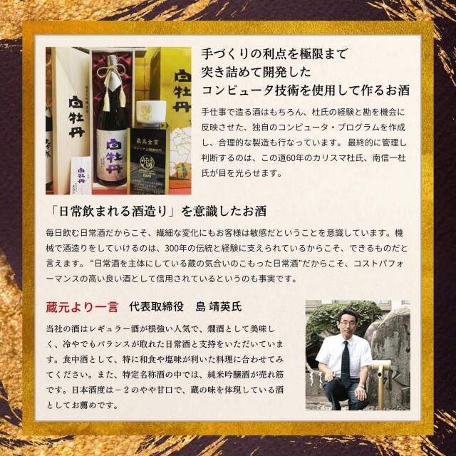 白牡丹酒造の大吟醸は、華やかできめ細やかな味と、