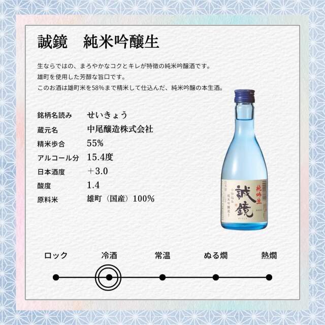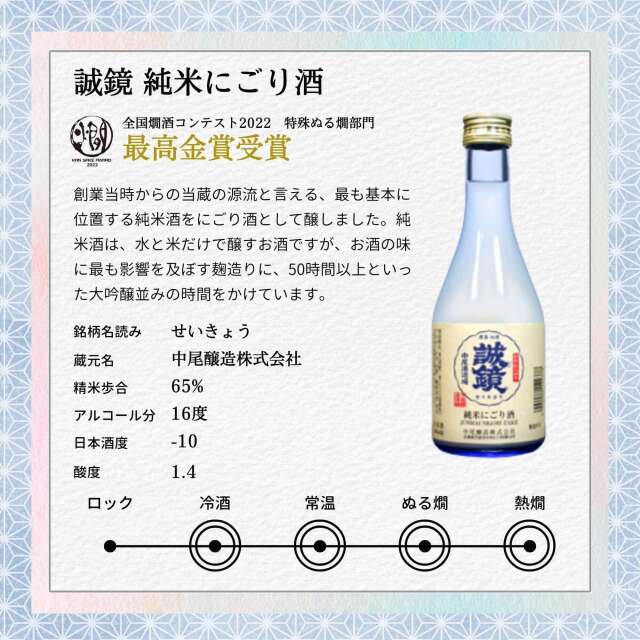 日本酒誠鏡小瓶飲み比べセット300ml×3本は、広島県竹原市の中尾醸造が丹精込めて造り上げた逸品です。