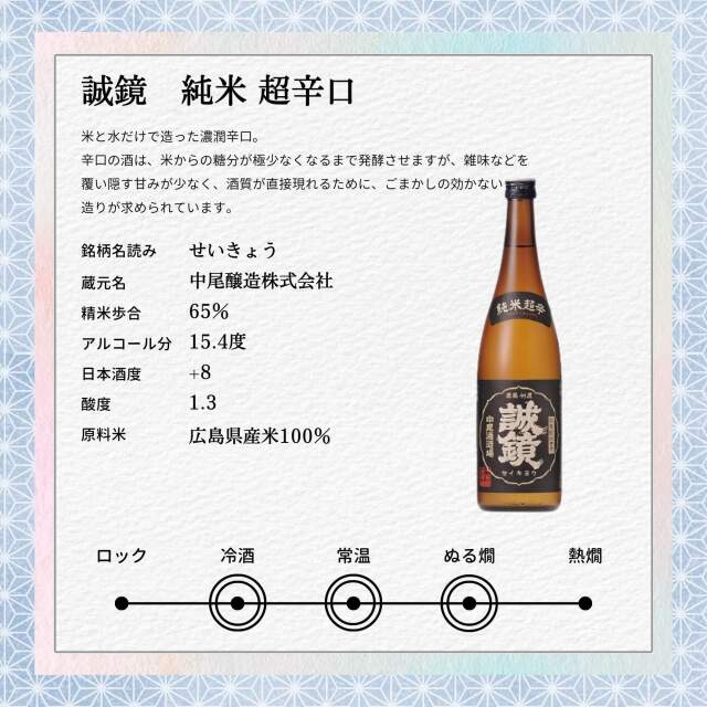 誠鏡超辛口セット720ml×2本は、中尾醸造が丹精込めて造り上げた日本酒です。