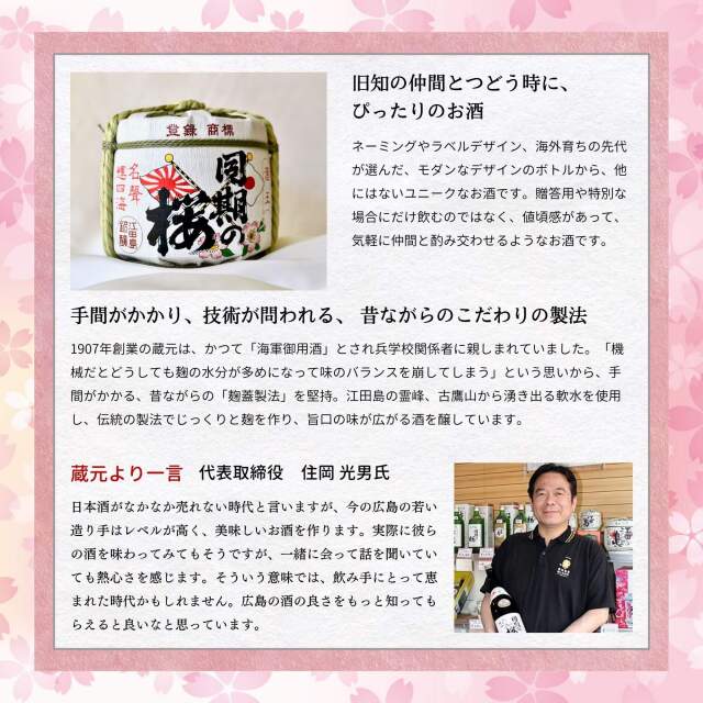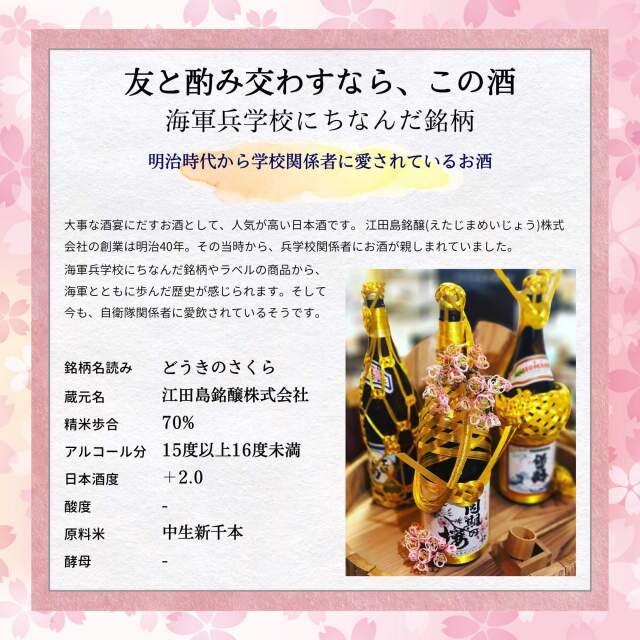 『 同期の桜 』の銘柄名は、学校で、会社でつちかった絆を確認する場にピッタリですよね。