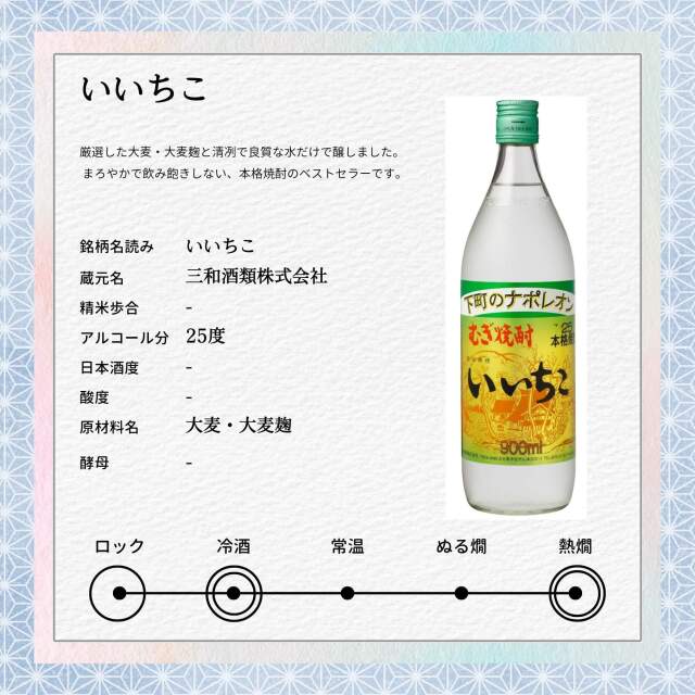 このセットには、まろやかで飲み飽きしない「いいちこ」と、