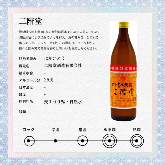麦の甘みを十分に引き出した「二階堂」が含まれています。
