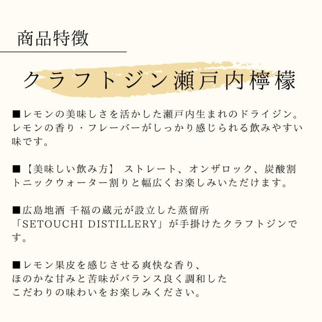 三宅本店の千福クラフトジン瀬戸内檸檬は、瀬戸内海の豊かな自然が育んだ檸檬をふんだんに使用した、特別なジンです。