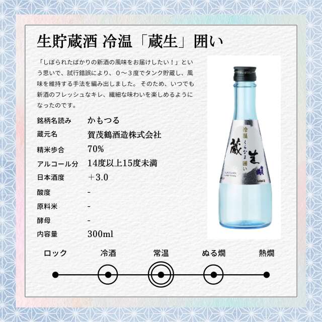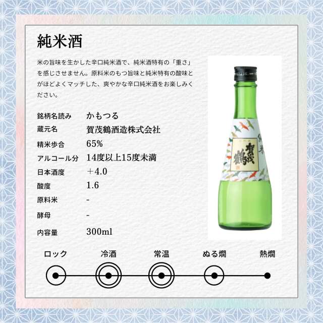 このセットには、300mlの小瓶が5本含まれており、それぞれが賀茂鶴酒造の卓越した技術を象徴しています。
