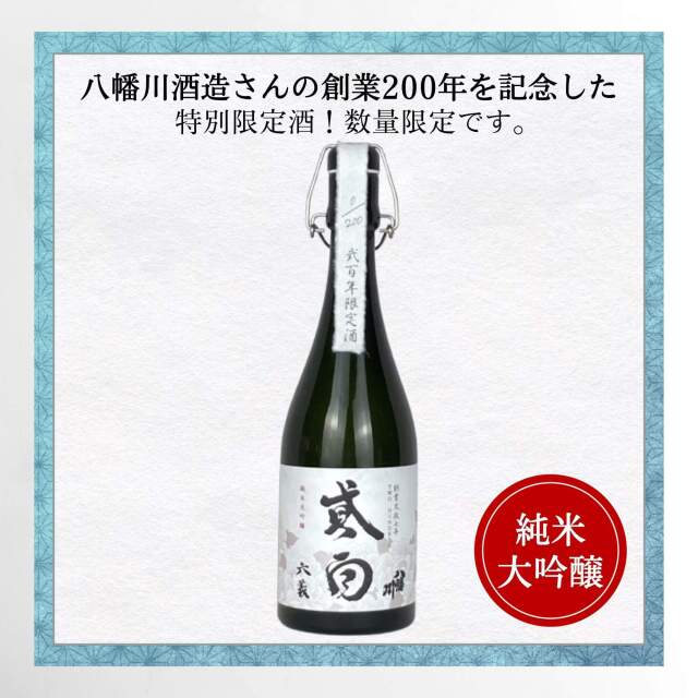 八幡川酒造 純米大吟醸 広島 日本酒 広島の日本酒 数量限定販売 売切御免 精米歩合30% 袋しぼりで搾ったお酒 味に膨らみ 瑞々しいマスカット 200年記念で弐百の日本酒発売